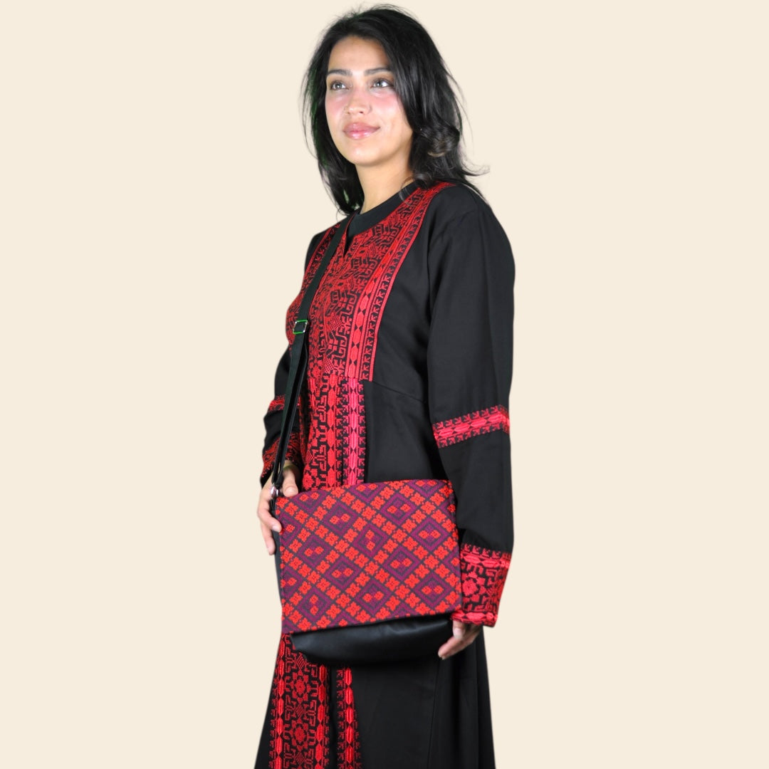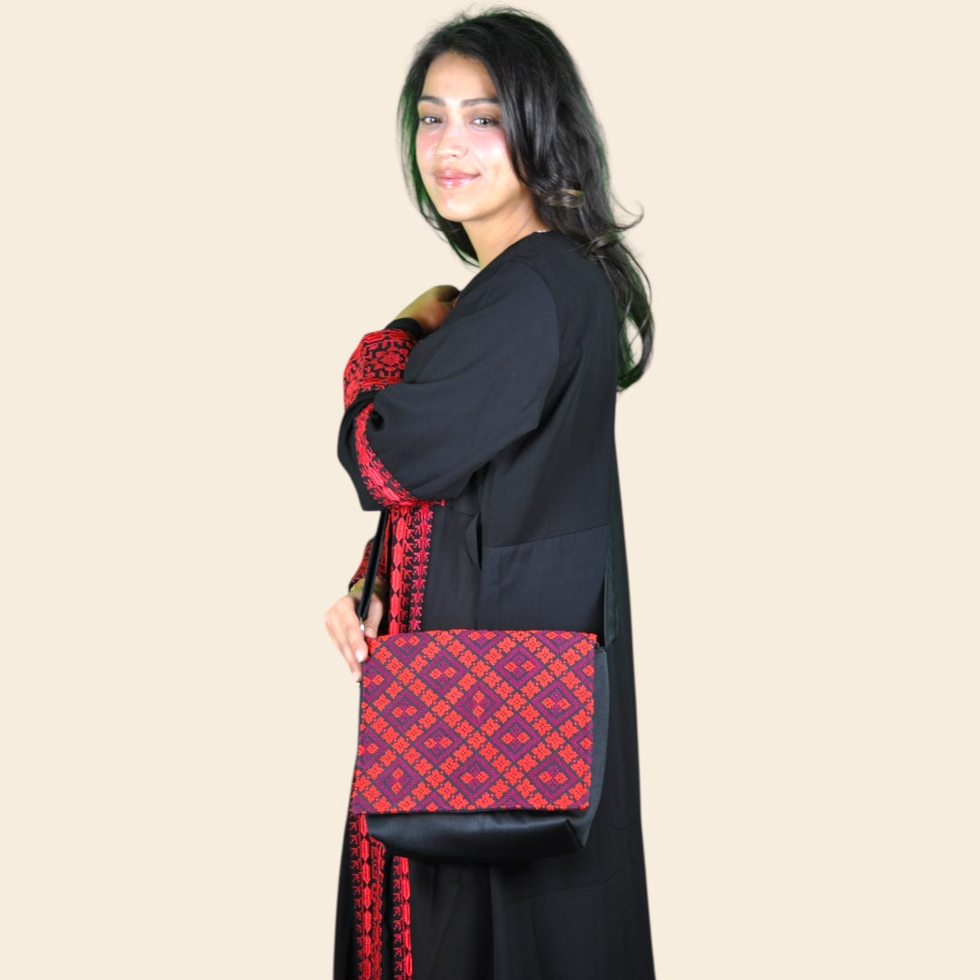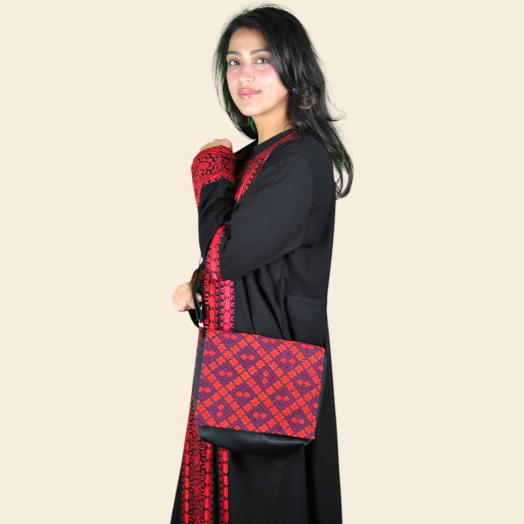 A unique design that is inspired by the rich culture and history of Palestine, featuring a Handmade Tatreez pattern stitched with love on heavy canvas material